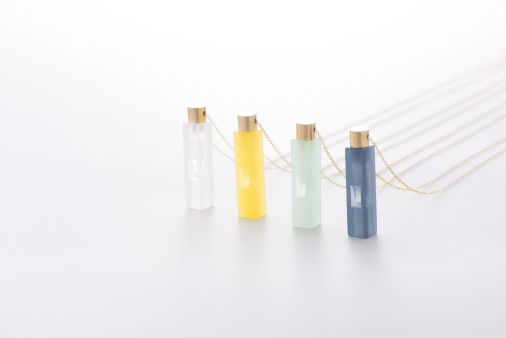 防災ホイッスル「effe bottle prism」は、香水などのガラスの瓶をモチーフにしており、真鍮のキャップがアクセントになっています。